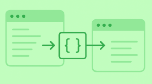 Minimal green vector illustration showing a static webpage layout on the left and interactive UI elements like toggles and forms on the right