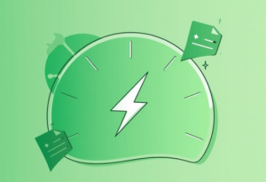 Minimal green-themed flat vector illustration of a clean web application dashboard with icons for speed, security, cloud server, mobile responsiveness, and scalability.”